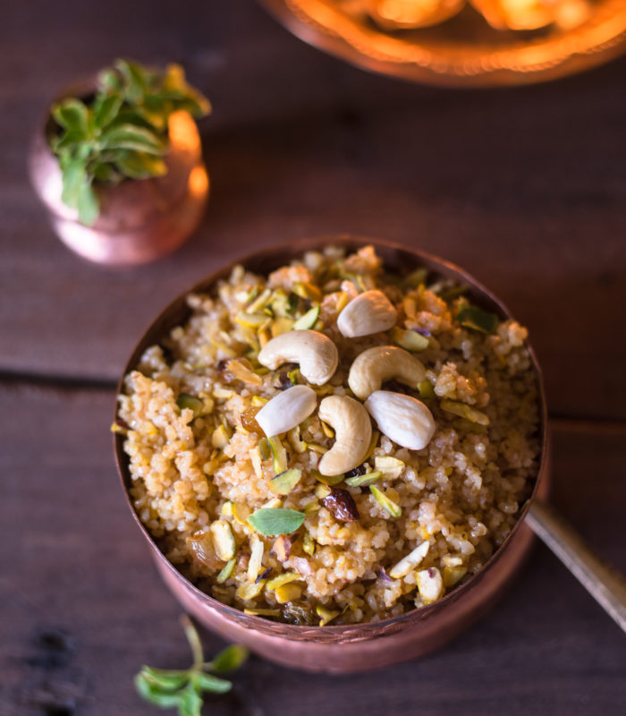 Fada Lapshi ….. the mention of this sweet and extremely traditional dish leaves most of us salivating. No celebration in a Gujarati household is complete without a bowl of Lapshi, a sweet preparation made with the humble dalia or broken wheat . There are two kinds of Lapsi one is simply called Lapshi or Kansar – made the coarsely ground whole wheat flour while the other is Fada Lapshi – made with broken wheat or ghau na fada. Both these preparations hold equal importance. Weddings, births, house warming, festivals, new purchase or any good new in the family is celebrated with a bowl of Lapshi/Kansar. The one difference I have noticed is the Lapshi is more rustic charm while the Fada Lapsi has a more urban appeal. The flour Lapshi/Kansar is very popular in the Saurashtra region and that is the reason this was the only kind of Lapshi I have grown up eating. It must be because of the easy availability of coarsely ground whole wheat flour in the villages that the rural communities always choose to make Lapshi/Kansar over Fada Lapshi. The Lapshi recipe calls fro another blog post 😉