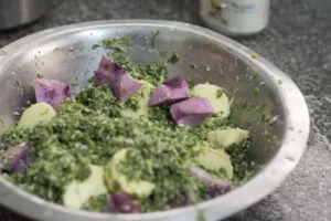 I requested Ranuben to do a brief write-up on her insights to a perfect Undhiyu and she obliged, with some added information from Ojas Desai she has put together her thoughts on Undhiyu. The pictures are of her making the Undhiyu.