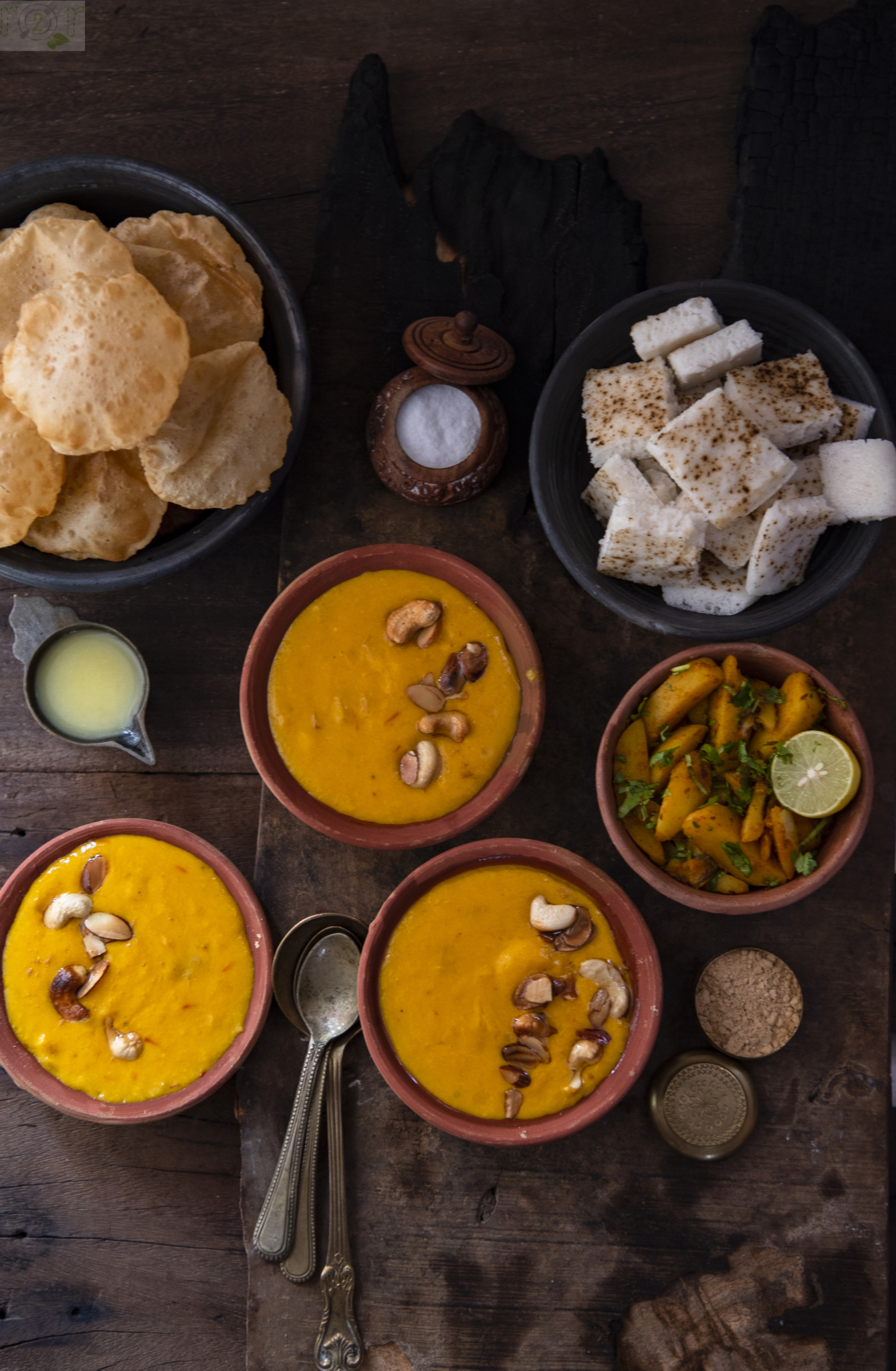 We have also been adding milk to our mango pulp just substitute it with coconut milk to take the drink to another level. Adding sugar or jaggery is absolutely up to you, I wasn’t required to add any because the Kesar mangoes I used very extremely sweet. I choose to cal this Aam Ras Doodhpak because we have cooked the two together. Serve it cold, addition of sooth/dried ginger powder is entirely up to you and so it the tempering part I feel both the ghee and sooth are part of Gujarati way of enjoying Aam Ras so why not add it!! The ghee roared cashews do taste good in the Aam Ras Doodhpak. Serve it as a festive summer spread for lunch along with Idra/white dhokla and potato subzi!!