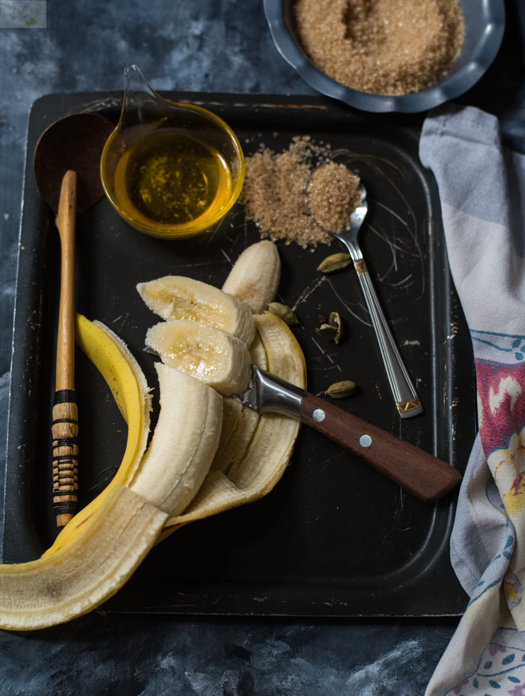Ghee Kera – Caramelized Bananas are an epitome of comfort food for a Gujarati kid. A melt in mouth morsel of gooey caramel syrup that coats the sliced banana scooped in a roti is every child’s desire when they lay their eyes on a subzi/veggies that are not to their liking. To me Ghee Kera remained a constant companion because a borderline fussy eater that I was. In fact, churmu, roti rolled with a drizzle of honey and Ghee Kera were the three musketeers that came to my rescue when it came to escaping from eating the foods I was not fond of like the. There was something about certain veggies that I did not like, whenever they made an appearance this quick and simple Ghee Kera came to my rescue. It is an easy dish to make, so simple that even young kids can wiz it up with ease, like I did as 7th grader. I have seen some families cook the banana for too long, I personally never liked sloppy looking ghee kera so always tend to take them off the fire once the ghee+sugar mix has nicely coated the banana slices. And never replace ghee with butter or oil. Never. It is the ghee that gives it the distinct taste.