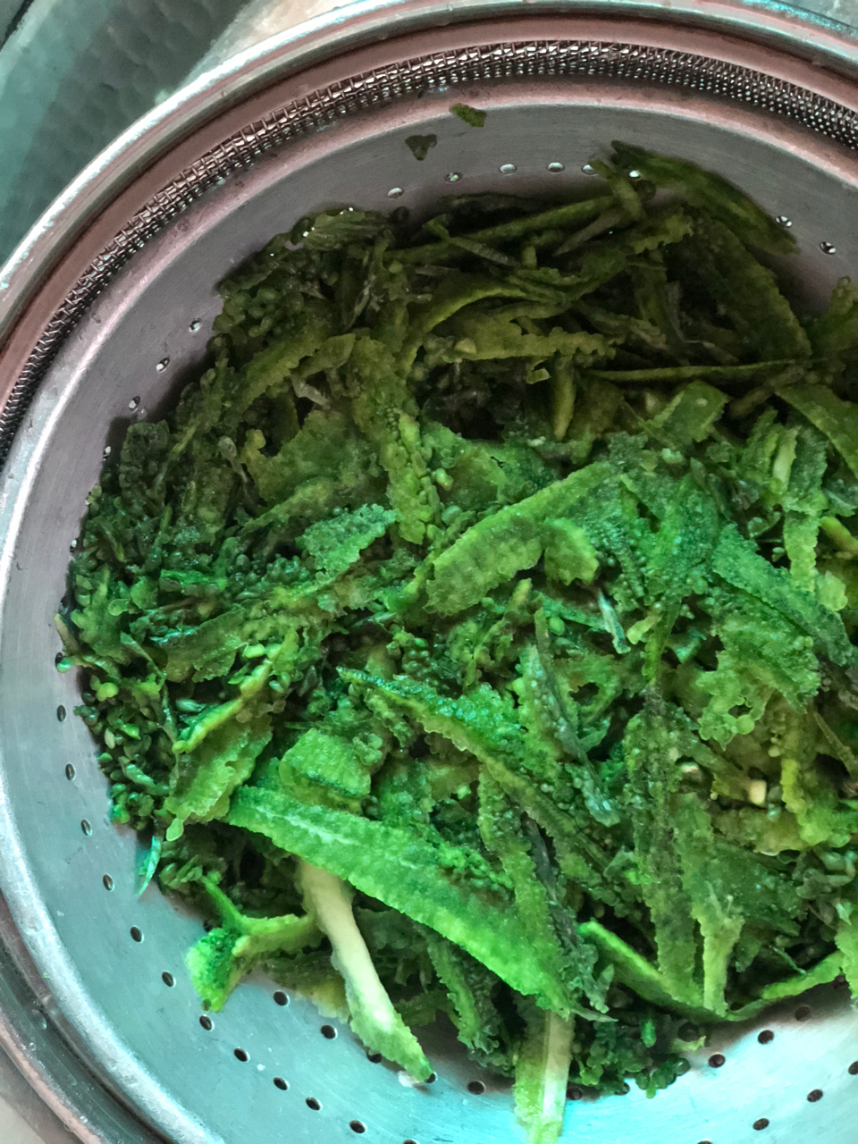 • 1 cup minced or finely chopped karela peel/bitter gourd peel