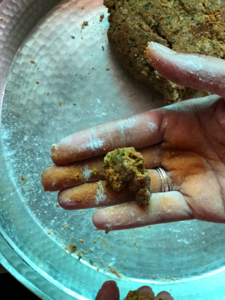 7. Shape the balls in small muthiya by pressing them in your fist (as shown in the video) and drop it in oil.