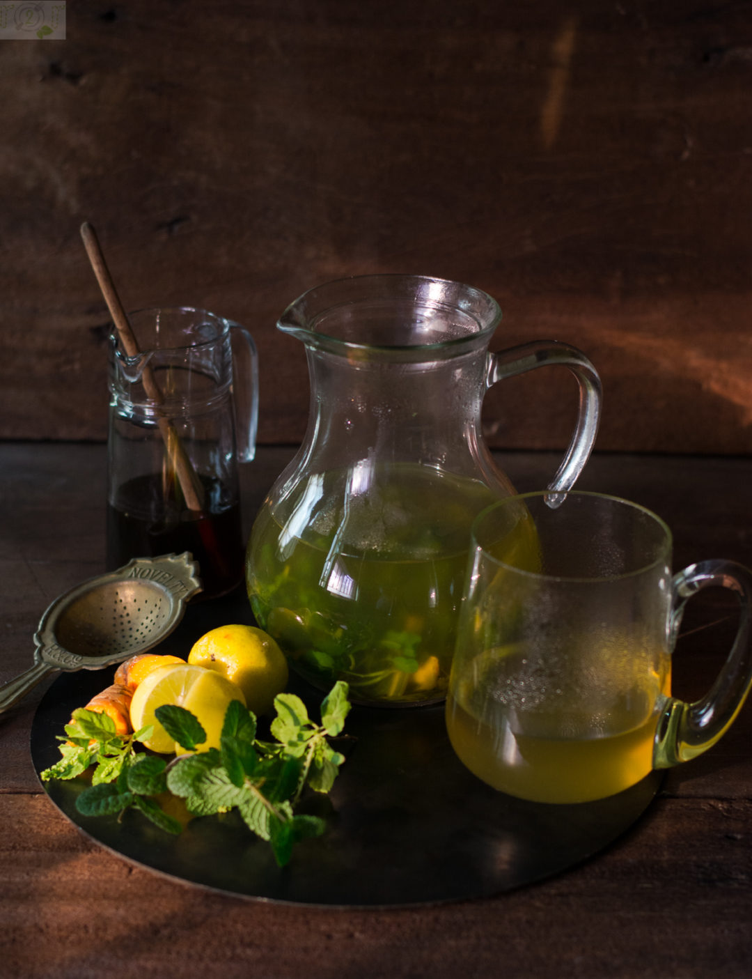 There is no particular recipe to making this drink. All one has to do is gather tulsi leaves, mint leaves, lemongrass stalks, ginger, fresh turmeric and pound them together. Add the pounded mixture to water and boil it for 7-8 minutes. Strain it in a glass or large coffee mug, add a juice of lemon and honey. Nonetheless will walk you through the ingredient list and method.