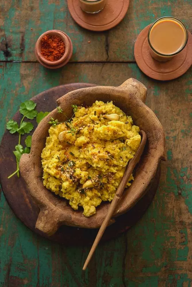 Since the word Patudo is new to me, I tried finding the meaning of it in Gujarati Shabdkosh only to find Patudi – described as dhokla made by cooking besan flour in buttermilk. Patudo made with a rather granular flour mix sounds like its first cousin, and a rather delicious one with the special garlicy tadka this particular recipe calls for!!