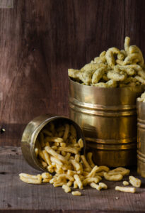 - Now grind the gathia to a coarse powder. The Gathiya are very soft hence you might just need to use the pulse option.