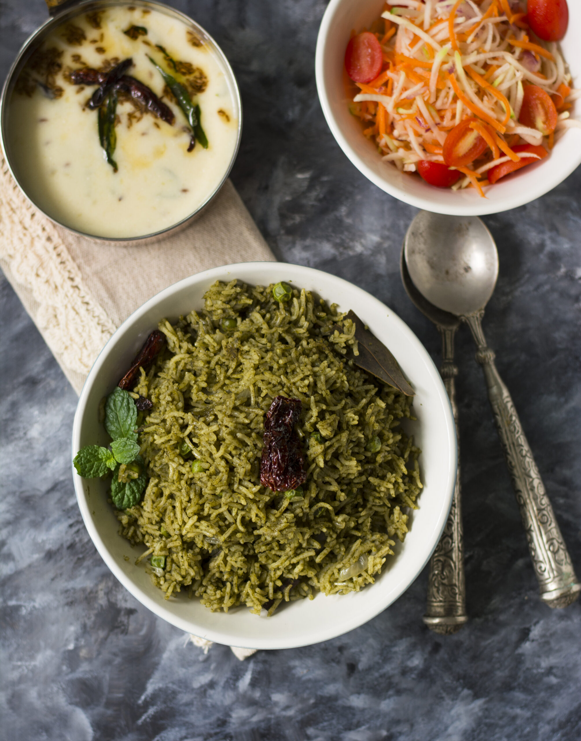 The Spinach Rice is very quick to make (infact she makes it in pressure cooker) and best served with Kadhi, salad and papad.