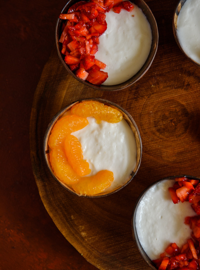 Tembeleq – a coconut pudding that trembles or jiggles when touched ❤️ It is a dessert of Puerto Ricon origin. Tembeleq (tem-bleh-keh) means ‘to jiggle’ in Spanish. It is a light and sophisticated dessert that involves very few ingredients and cooking. To witness the Tembeleq tremble it has to be turned out of its individual mould. Have you noticed that I am partial towards coconut milk? This blog has a decent number dishes made with this ingredient that I love for its mellow and refreshing taste. The easy access to fresh coconut milk in Singapore has seen me cook quite often with it. Indian, Thai, Sri Lankan curries with coconut milk are a favorite with my brood.