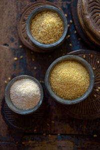 Somewhere between Fada (cracked wheat) and Ladoo-Lapshi flour (very coarsely milled flour) is a grind we all call Thuli (like fine couscous). When we say Thuli it means the consistency of ground wheat and the dish itself (much like Daliya). And 50 – 60 years ago, it was the most preferred food for dinner, especially amongst the elderly and children. There was always thuli in the dabba waiting to be rustled up as quick dinner to be enjoyed with milk or ghee-gor/jaggery (no, they did not bother about adding handful of vegetables to it), the idea was to have very simple, spice free meal at the end of the day. And that was the charming aspect of this preparation. It had to be simple, lite and honest. In our household, my very disciplined Ba would always have Thuli for dinner, which she invariably had at 6.30 (yes, that early), and for a very long time, she milled the thuli herself in the manual stone mill.