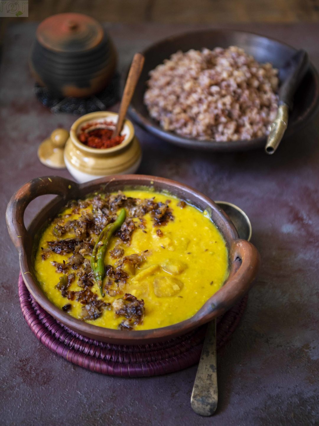 The theme for this fortnight’s #thecookbookcollective was The Toovar Dal with Green Mango recipe I share here goes on to show how raw mangoes are used as star ingredient in our everyday dal, subzi, achaar etc. The recipe is from the book Mangoes and Curry Leaves – Culinary Travels through the Great Subcontinent by Jeffery Alford and Naomi Duguid. It is one of the 6 books I have of Naomi Duguid each a masterpiece in its own right. The book takes us on a journey through the subcontinent from Nepal to Srilanka, Bangladesh and Pakistan. The stories they weave make a compelling read and each recipe has been honored and kept the way it is cooked on everyday basis in our homes.
