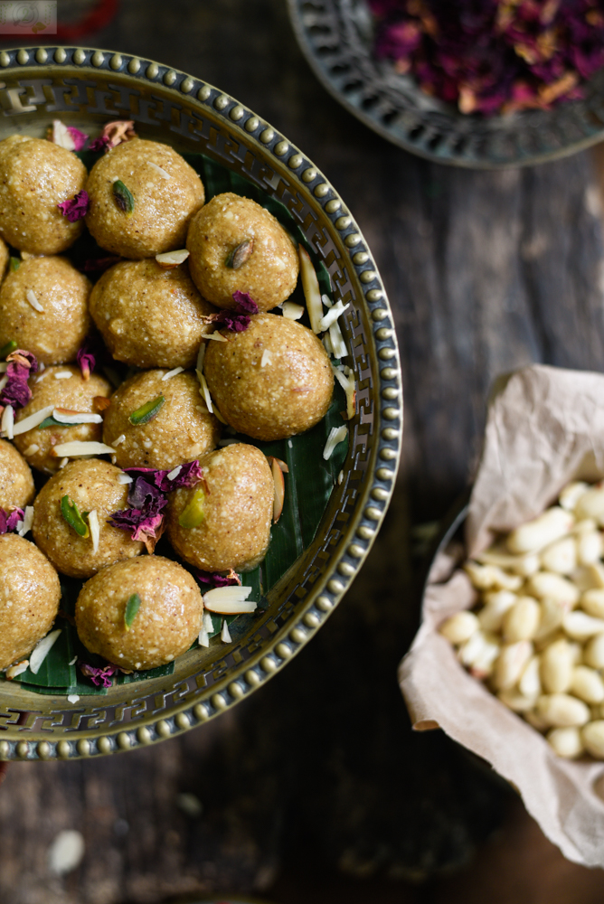 - When the mixture is cool enough to handle, roll it in ladoos. It makes 22 small ladoos.