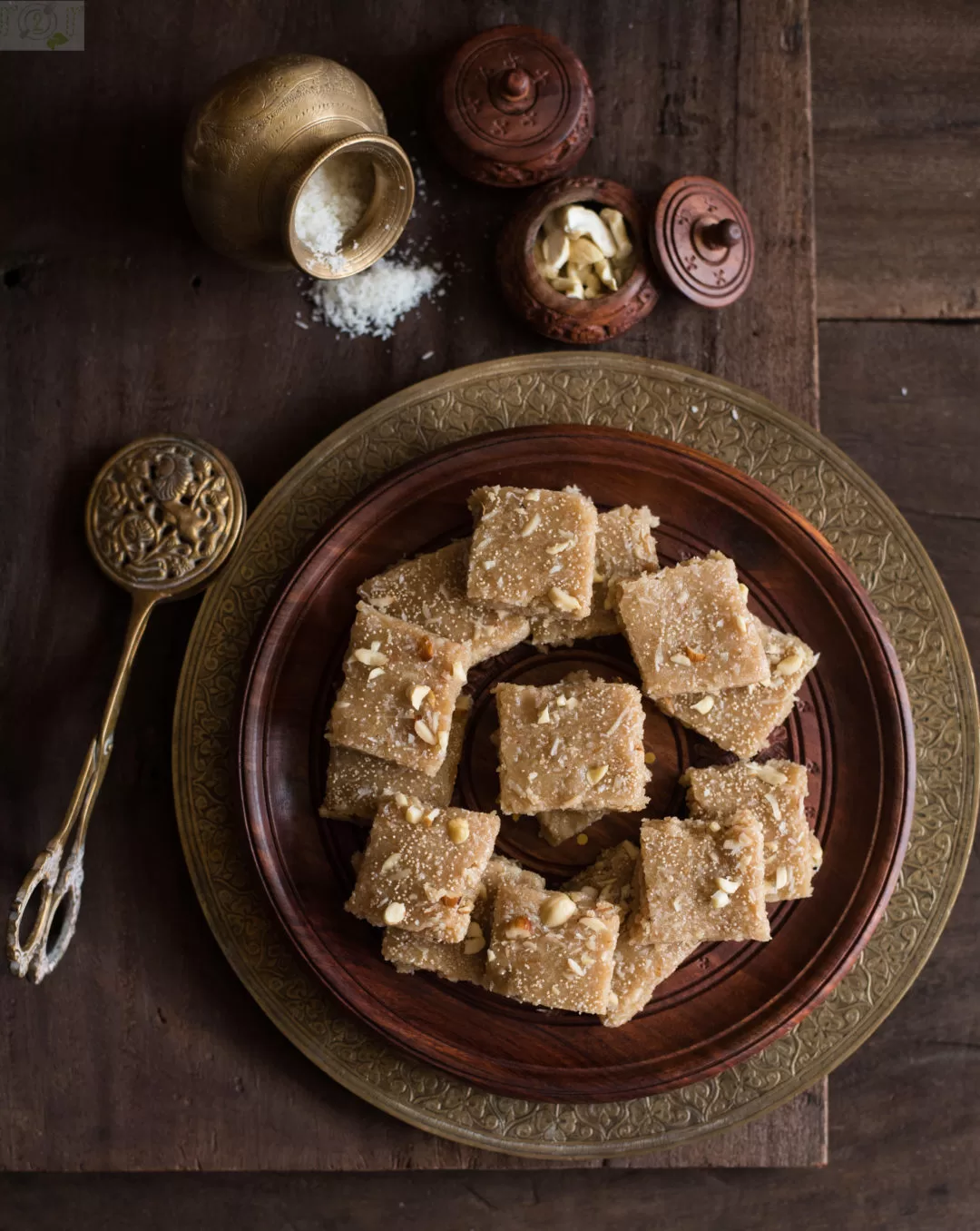 Once the Burfi Churmu has cooled a bit, cut in cubes or diamonds.