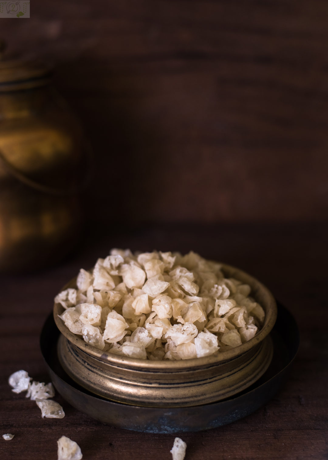 Add the fried Ghes Vadi and bring the curry to a gentle boil.