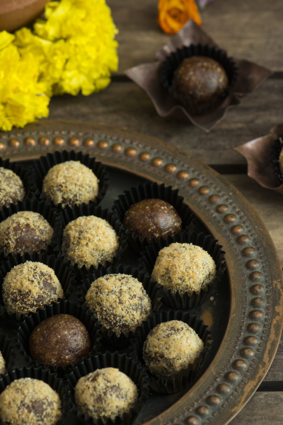 The Date and Peanut Truffles are ready to be enjoyed as a quick bite or as an offering or however you may desire…..